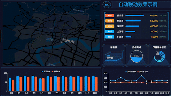 - 支持業(yè)務(wù)互動(dòng),包括不限層次的鉆取、多維度的聯(lián)動(dòng)分析、輪播時(shí)自動(dòng)聯(lián)動(dòng)其他組件等,協(xié)助您更好的發(fā)現(xiàn)并分析業(yè)務(wù)問(wèn)題